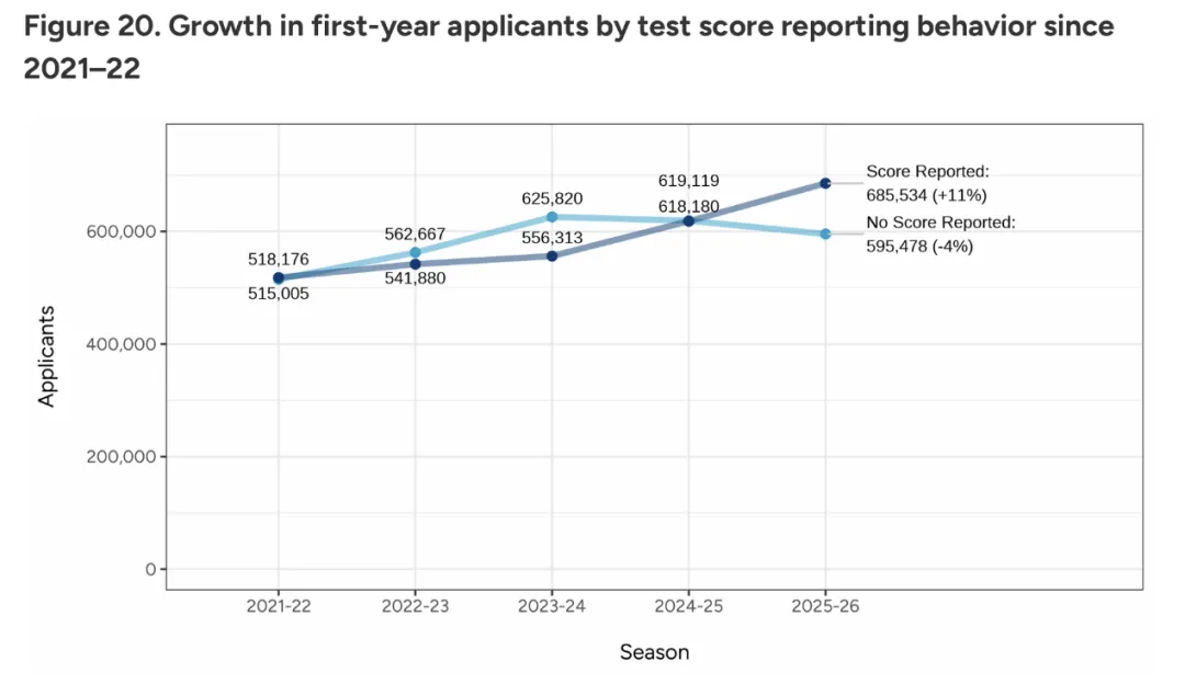 在很多学校仍然维持“Test-Optional”政策的情况下,学生的选择却发生了明显转向。