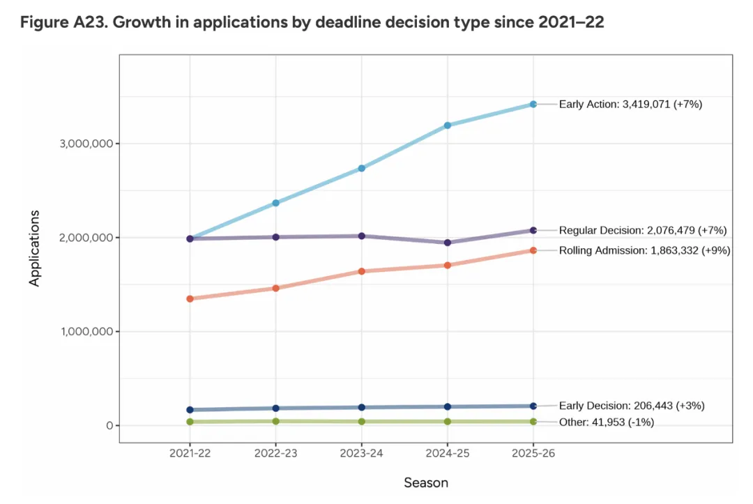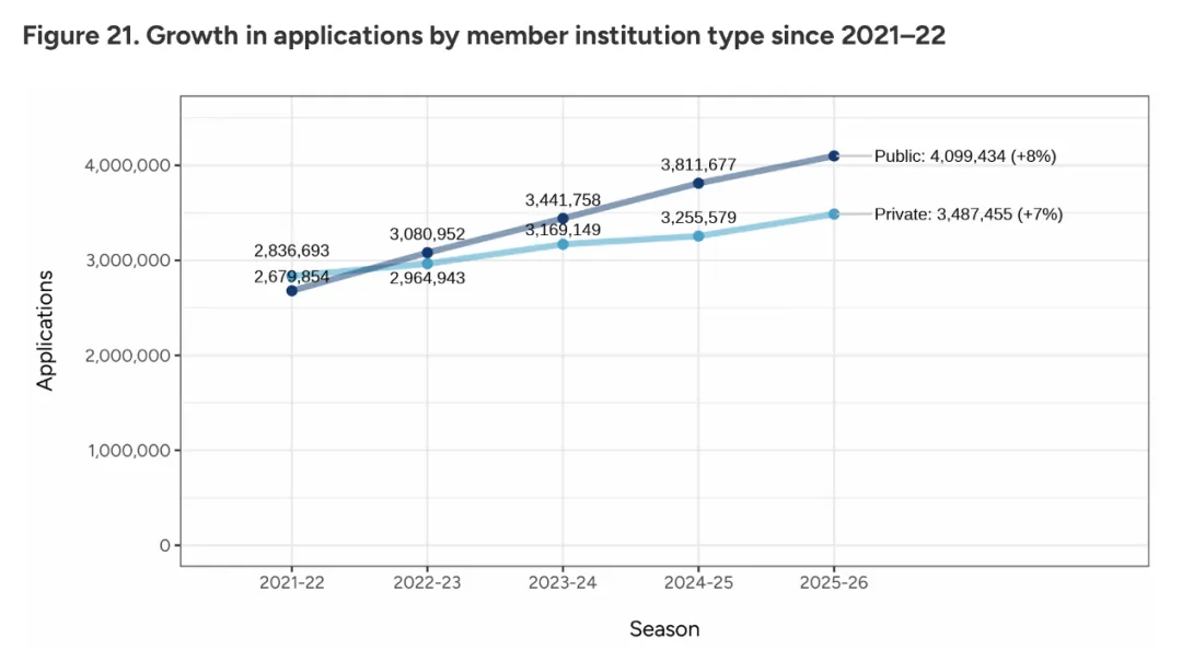 这份数据释放出一个非常明确的信号:申请人数在涨、申请数量在涨、标化提交率在涨,但顶尖名校的增长却在放缓。