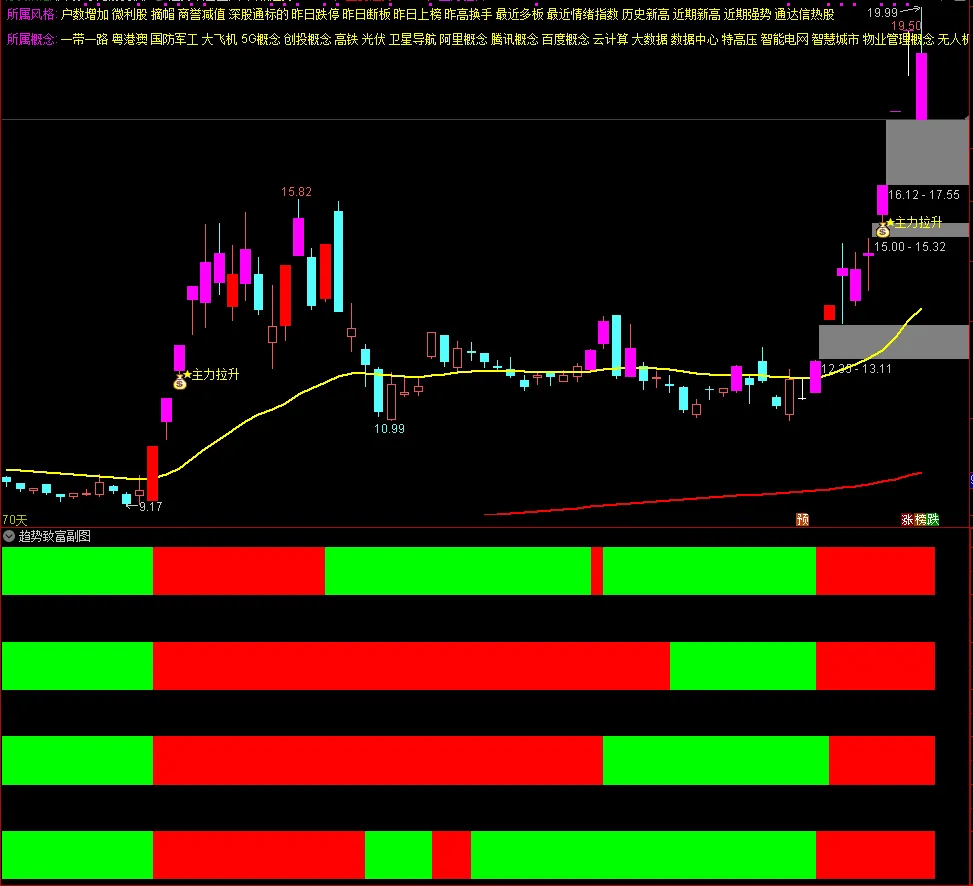 次级趋势:EMA(趋势主力1,36),COLORYELLOW,LINETHICK2;