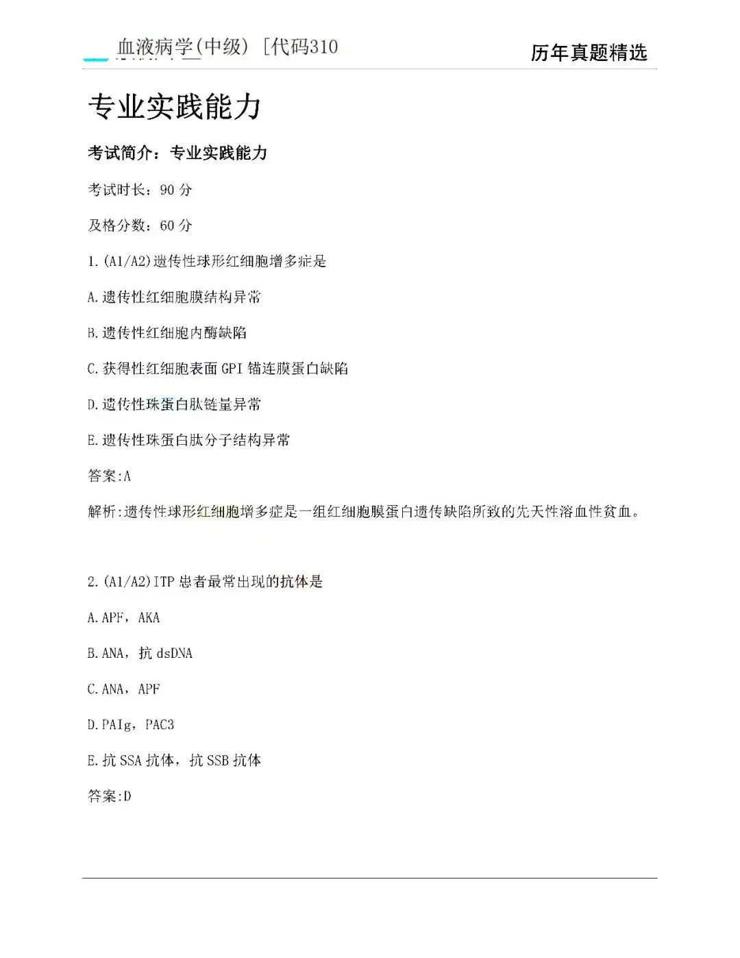 以上是血液病(310)中级备考资料包pdf..部分精华内容节选完整版领取如下: