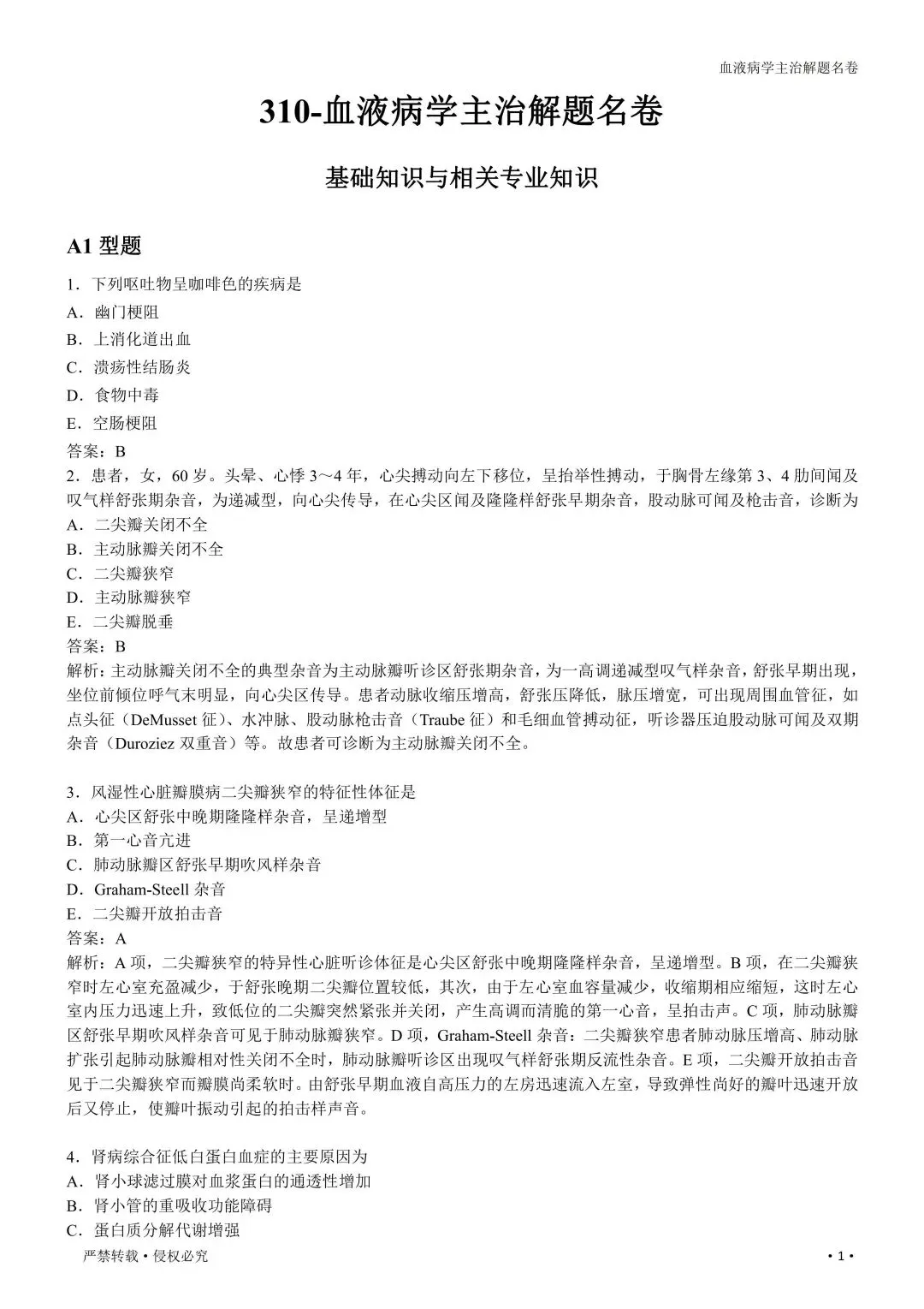 【免费下载打印.pdf】血液病学中级310备考资料包