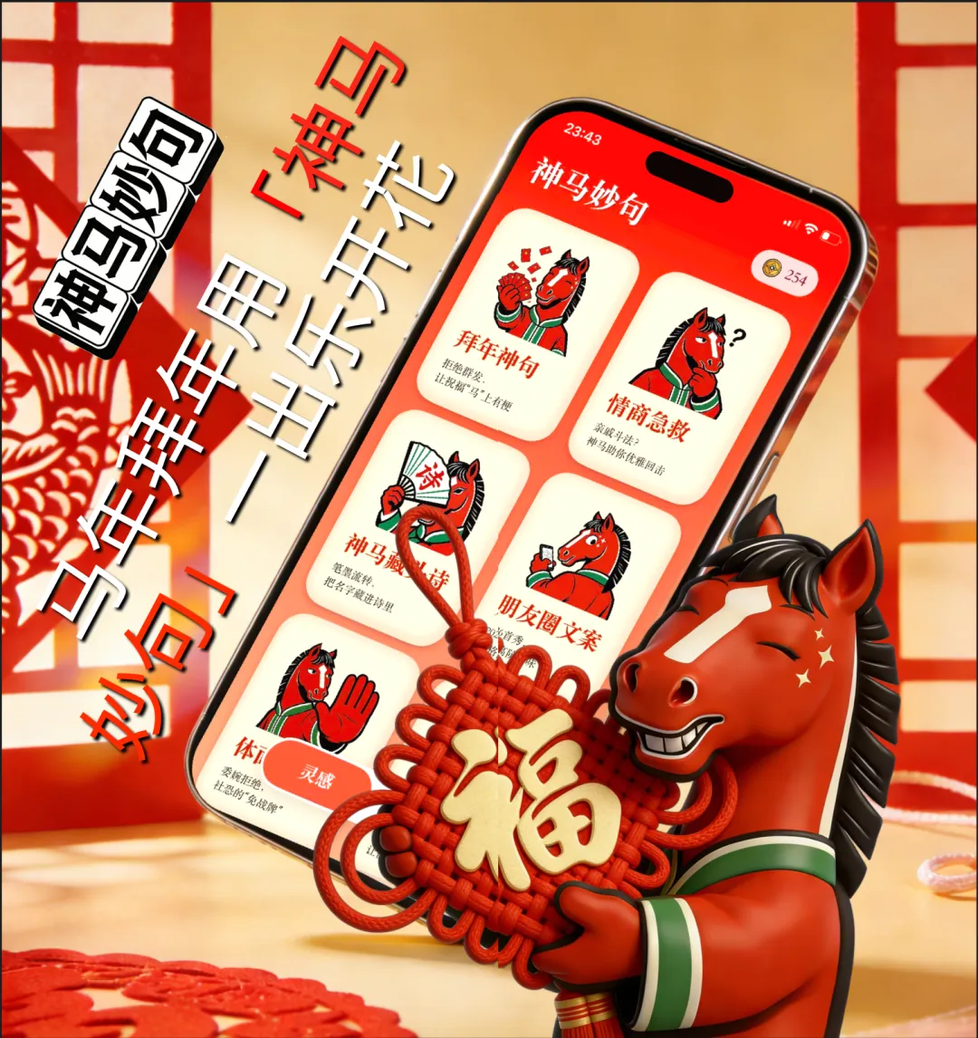 加上春节的限定场景,这简直是一个完美的练手项目。名字也是 AI 取的,叫“神马妙句”(因为正好是马年),我们觉得这个名字兼具了趣味和调性,非常抽象,非常不错。