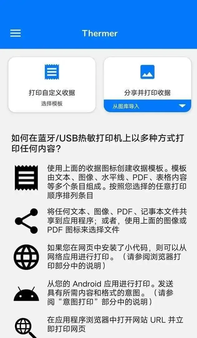 Thermer 这款「POS 蓝牙热敏打印机」应用,全称是 Bluetooth Mini Thermal Printer,它是一个专门用于打印收据、发货标签的迷你打印机应用程序,兼容POS USB 蓝牙热敏打印机。你可以在蓝牙或USB连接的热敏打印机上,打印出完全自定义的收据。它本质上是一个功能齐全、可高度定制的收据制作工具,也是一个移动端的POS热敏打印应用程序。