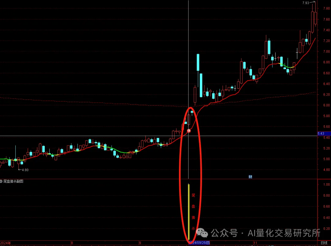 DRAWTEXT(尾盘绝杀,0.8,’ 尾’),COLORRED;