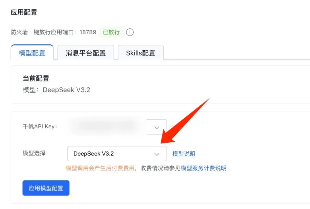 当然了,你也可以根据自己的需求,选择模型配置、消息平台配置和 Skills 配置。