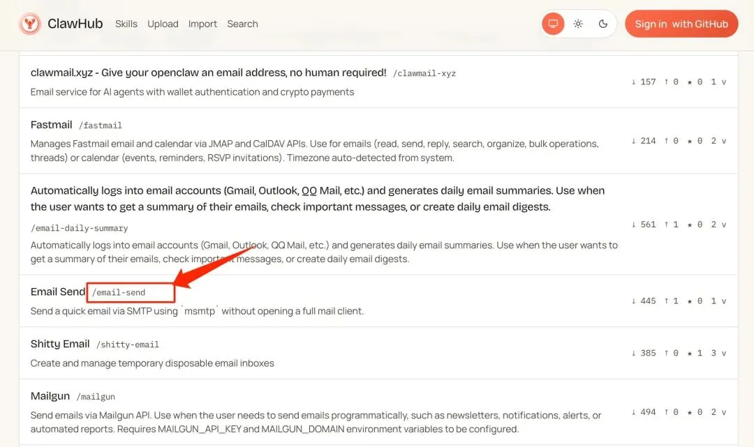 首先,我们先安装一个邮件相关的 skill ,百度智能云这里支持安装 clawhub 当中的几百个 skill ,可以说生态很丰富了,比如,安装了 email-send skill ,配置上自己邮箱的授权码,就可以使用了。