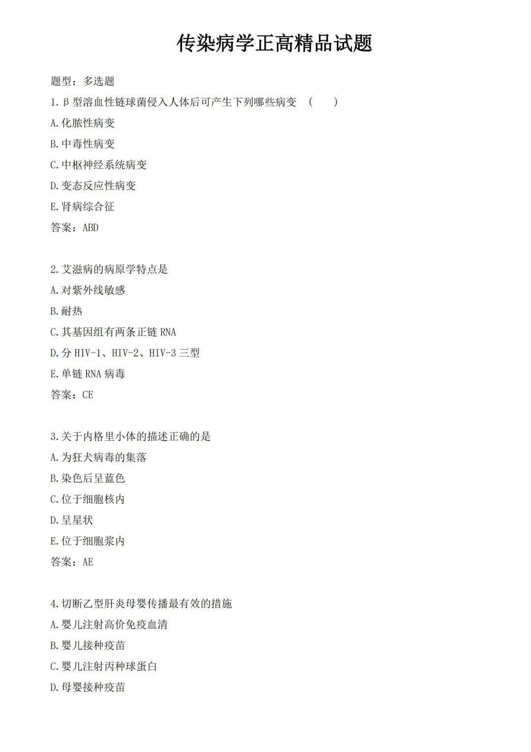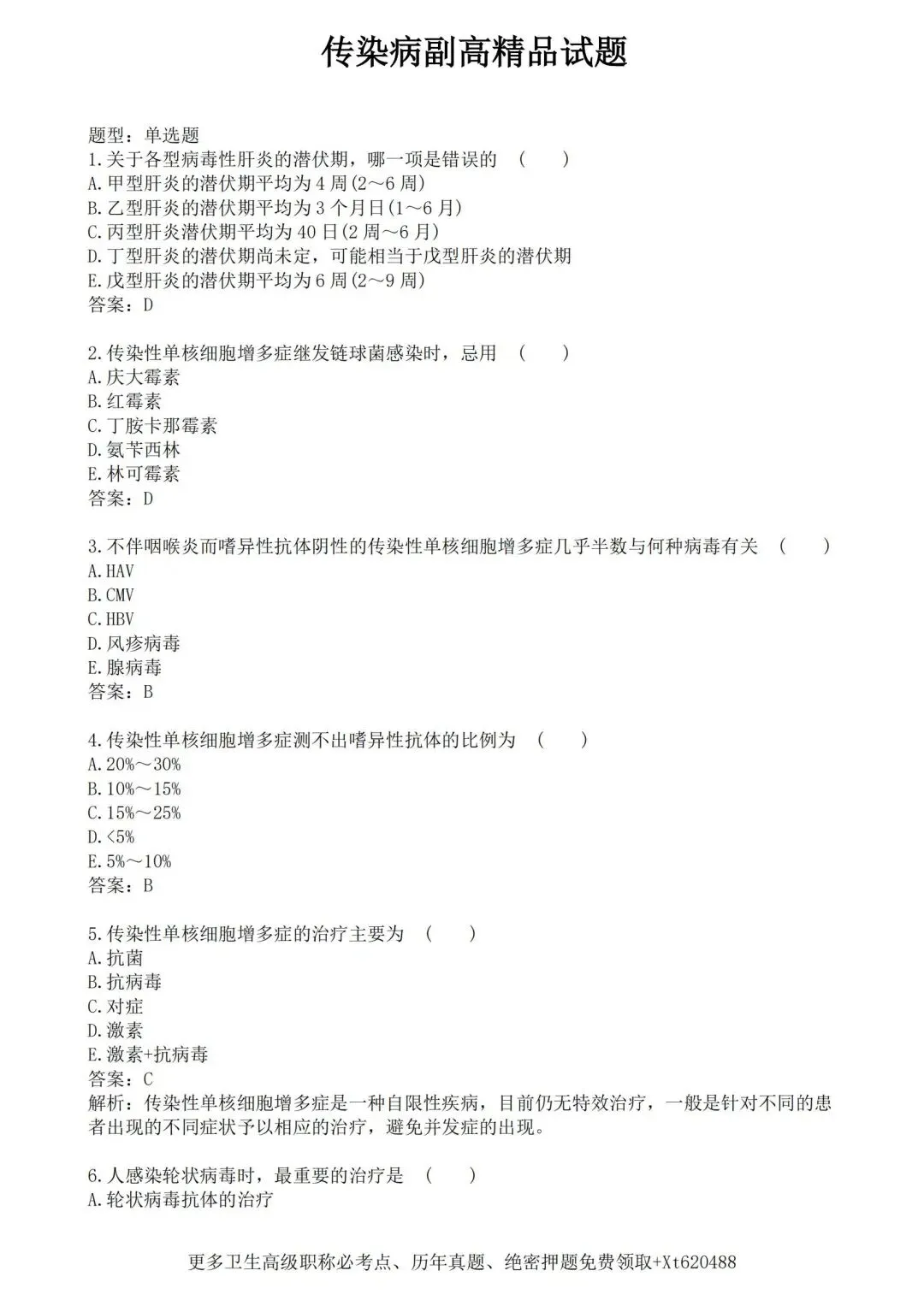 【免费下载打印.pdf】传染病学高级职称008精品试题