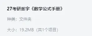 27考研张宇《数学公式手册》PDF【高清无水印】完整版可打印【免费下载】!!!