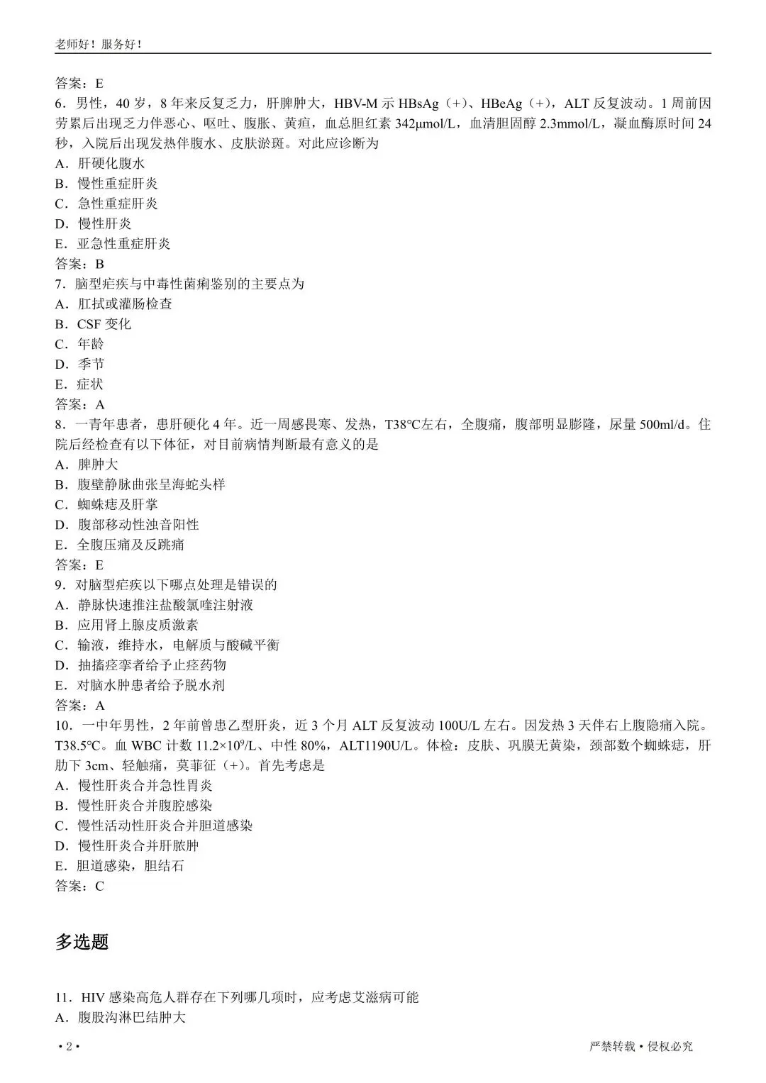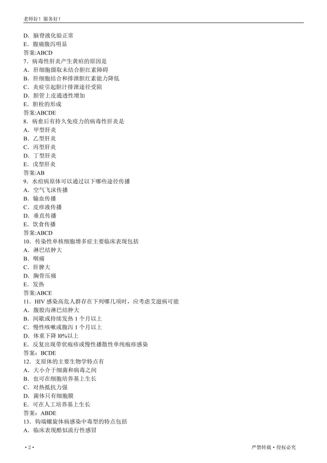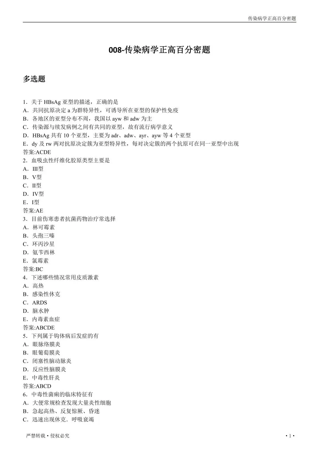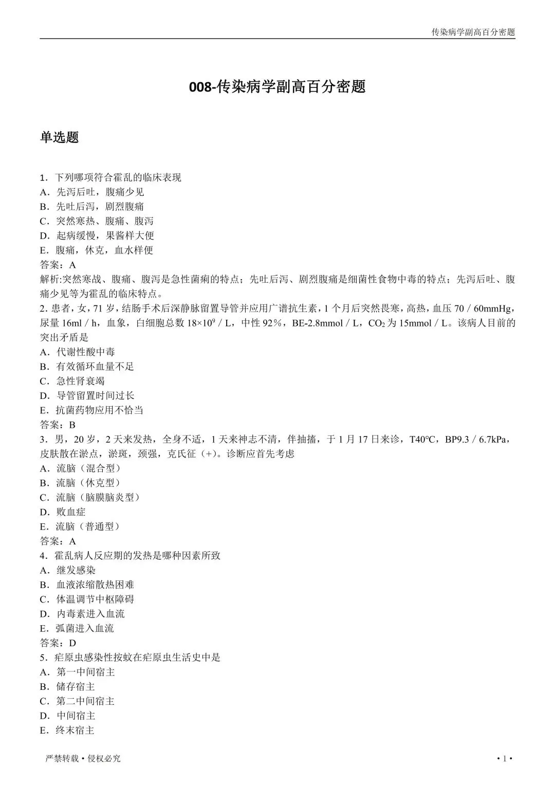 【免费下载打印.pdf】传染病学高级职称008百分密卷