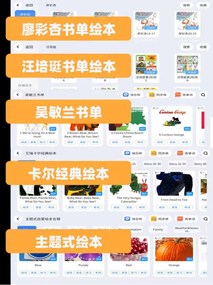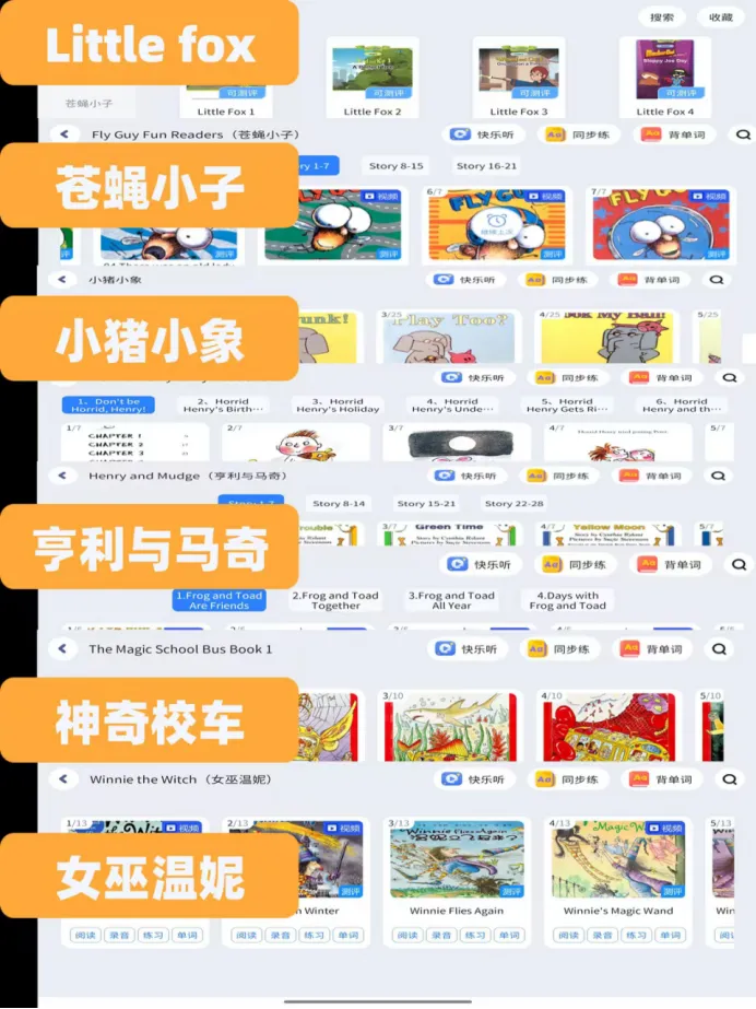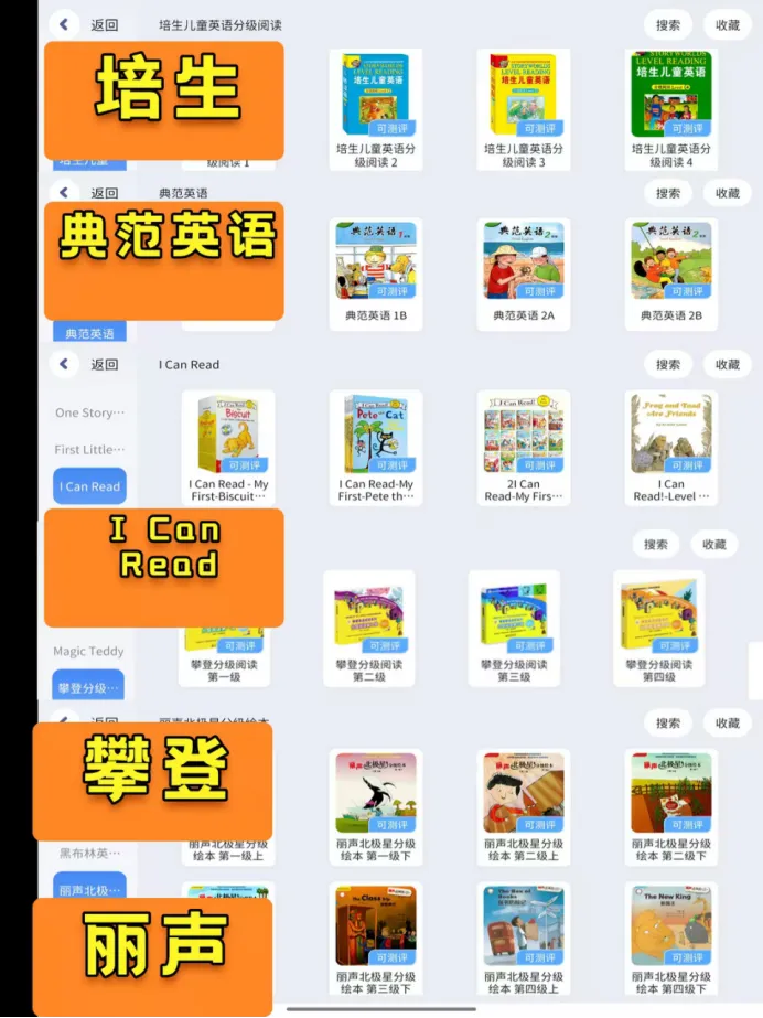 从孩子的英语启蒙到孩子高中,所有你会用到的资源,无论是启蒙的儿歌和绘本,动画片,还是各种分级阅读、桥梁书、章节书,各类原版教材、校内教材都涵盖了。帮您省去万元报班费