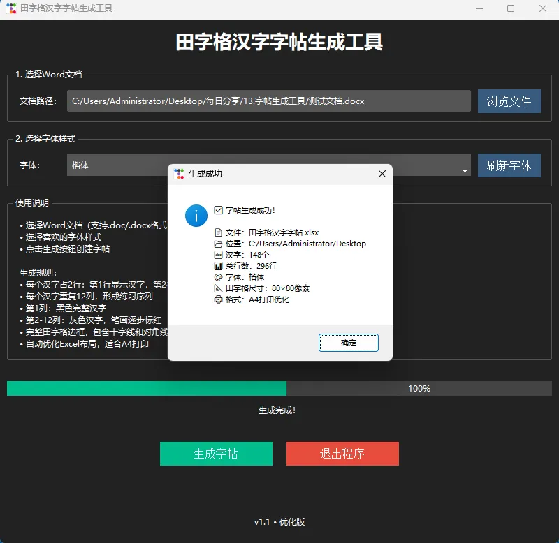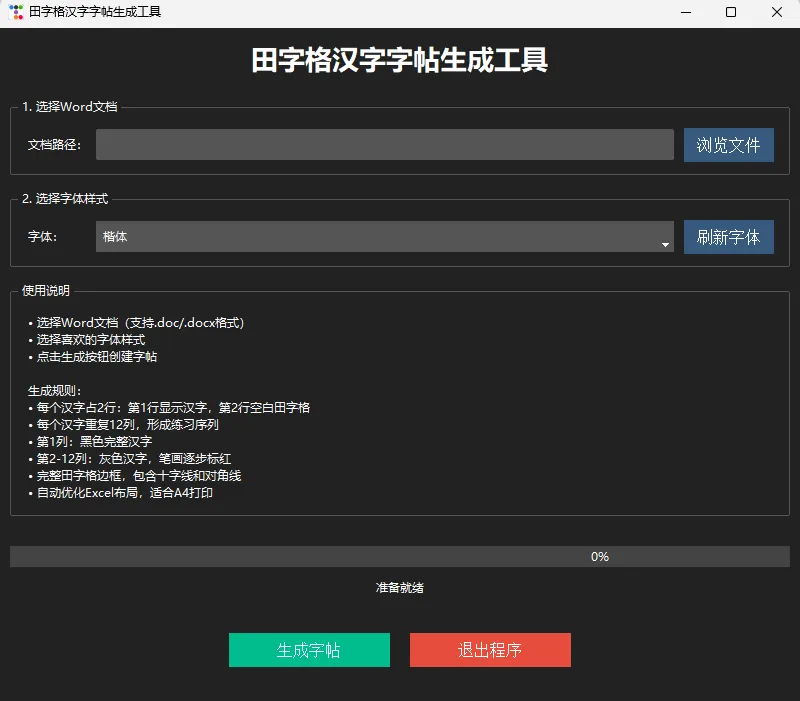 今天,我要给大家介绍一款我们团队完全免费开源的神器——「田字格汉字字帖生成工具」!