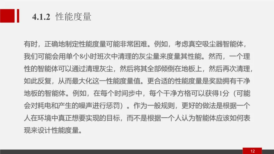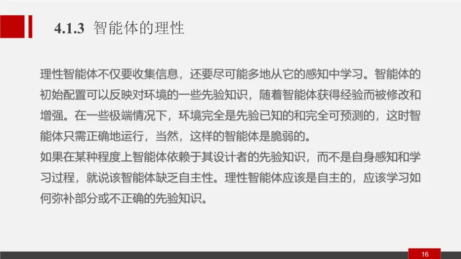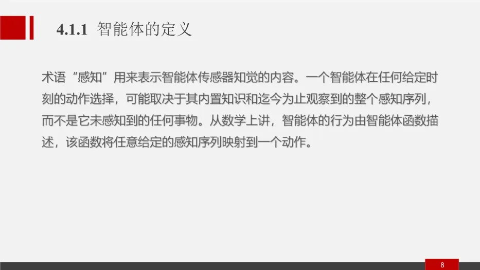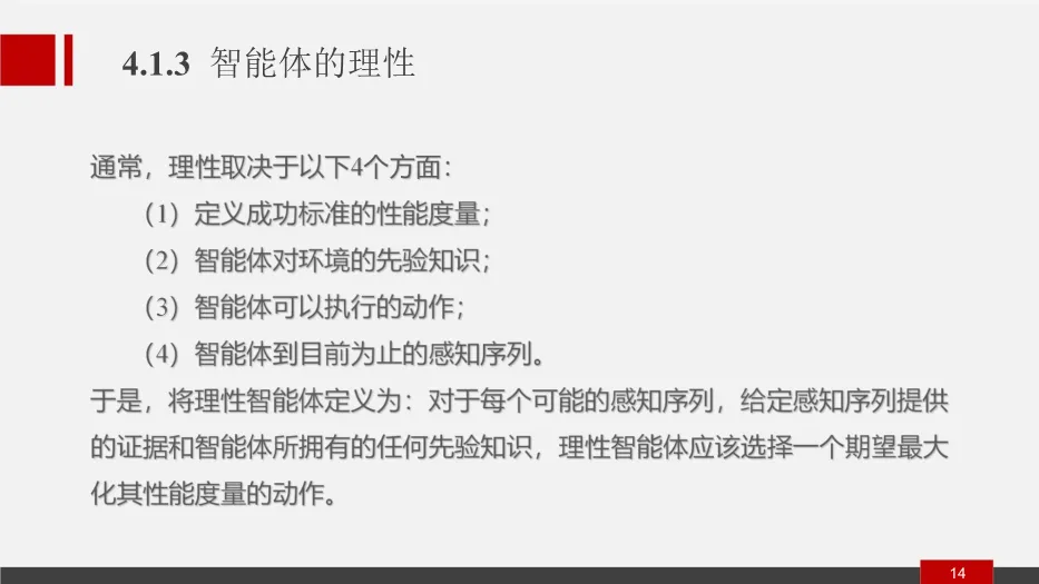 智能体的核心价值在于通过传感器感知环境、依托内置逻辑做出理性决策,并通过执行器作用于环境,其行为需通过性能度量来评估,追求期望效益最大化而非绝对完美。