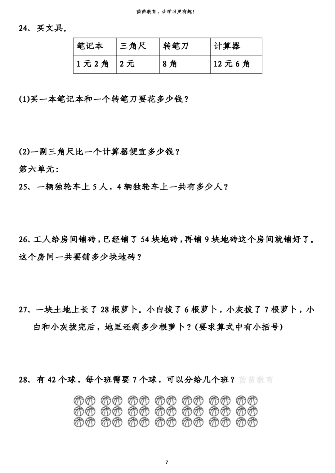 (3)答案不唯一,如:买一个转笔刀和一副三角尺共需多少钱?