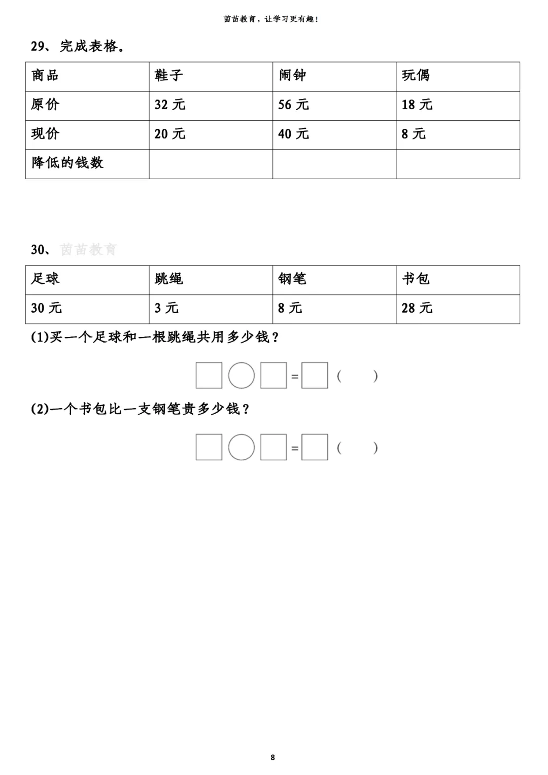 30、(1)30+3=33(元) (2)28-8=20(元)