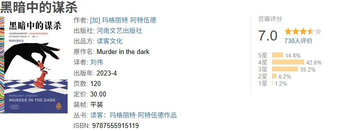 在为男性设计的世界里,女性必须改变游戏规则。 《黑暗中的谋杀》不是一般意义上的短篇小说集,而更像一部机关密布的游戏脚本集。 将女性的生命经验转化为游戏,便是重新设定,重新体验,重新赢取。