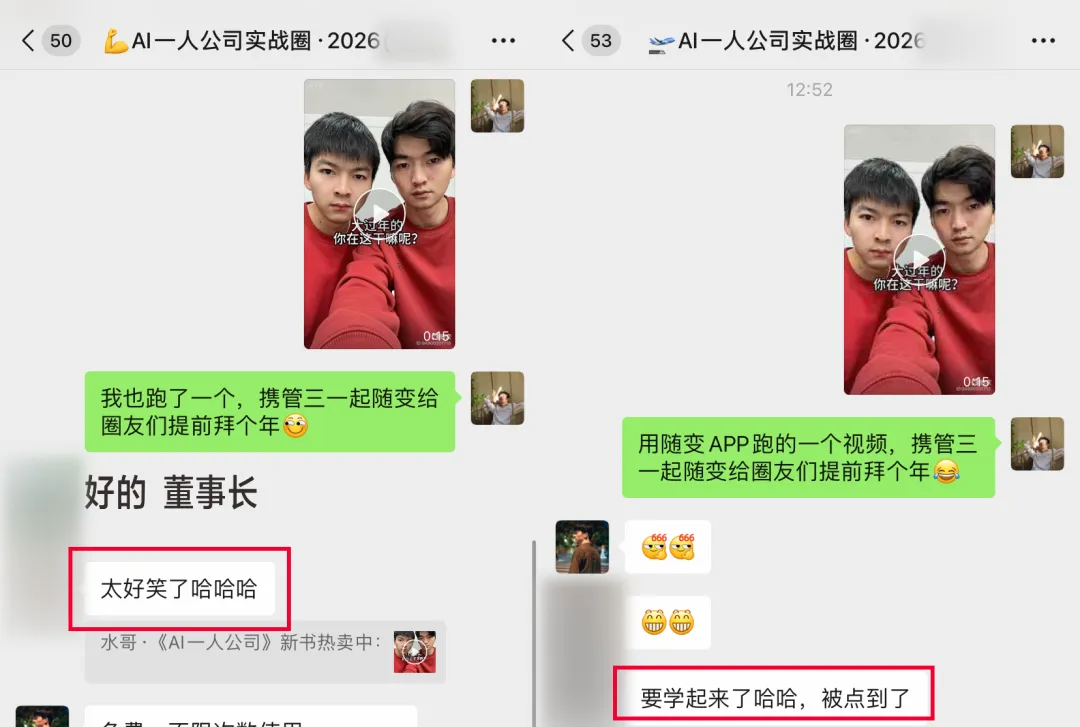 所以我打算给我AI实战圈的圈友们搞一个拜年视频,只是上传了我和我合伙人管三的正面照片。