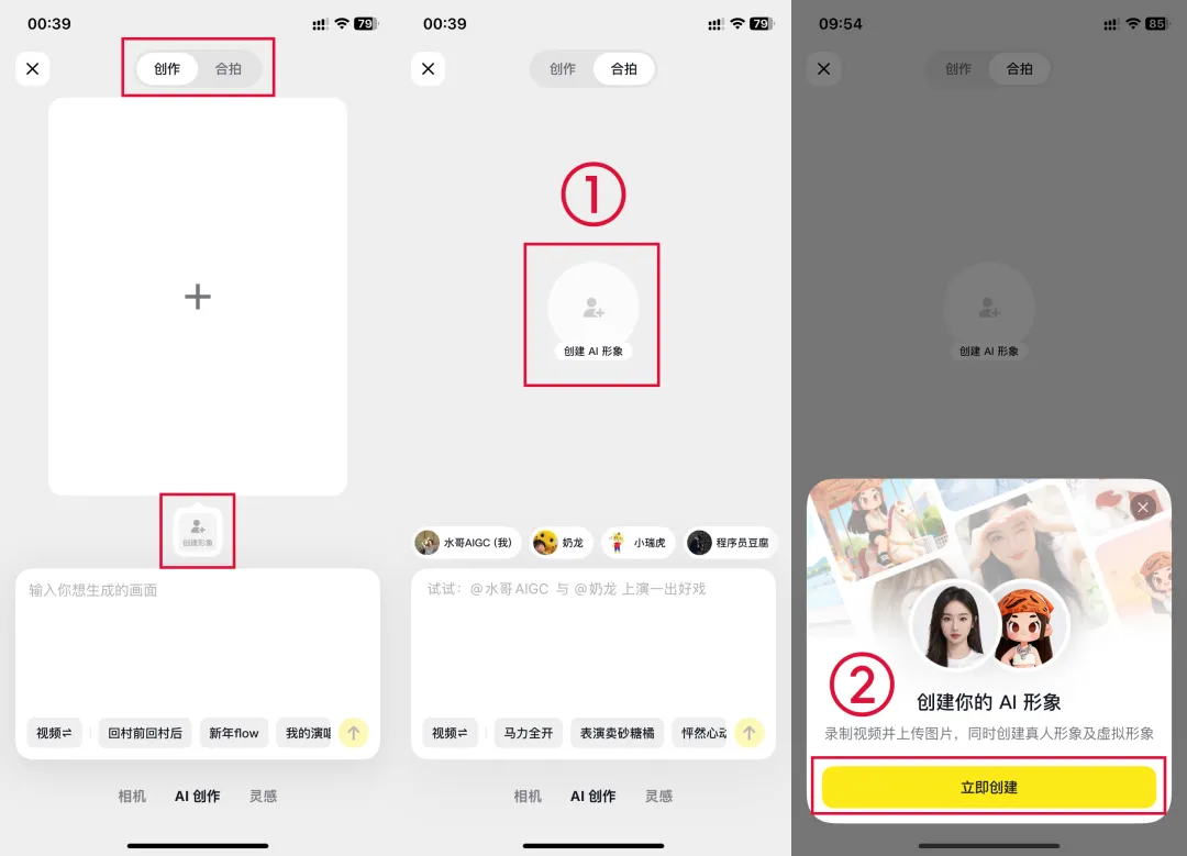 而这两种创作方式,它都会先引导我们去创建AI形象,其实也就类似豆包的分身创建功能。