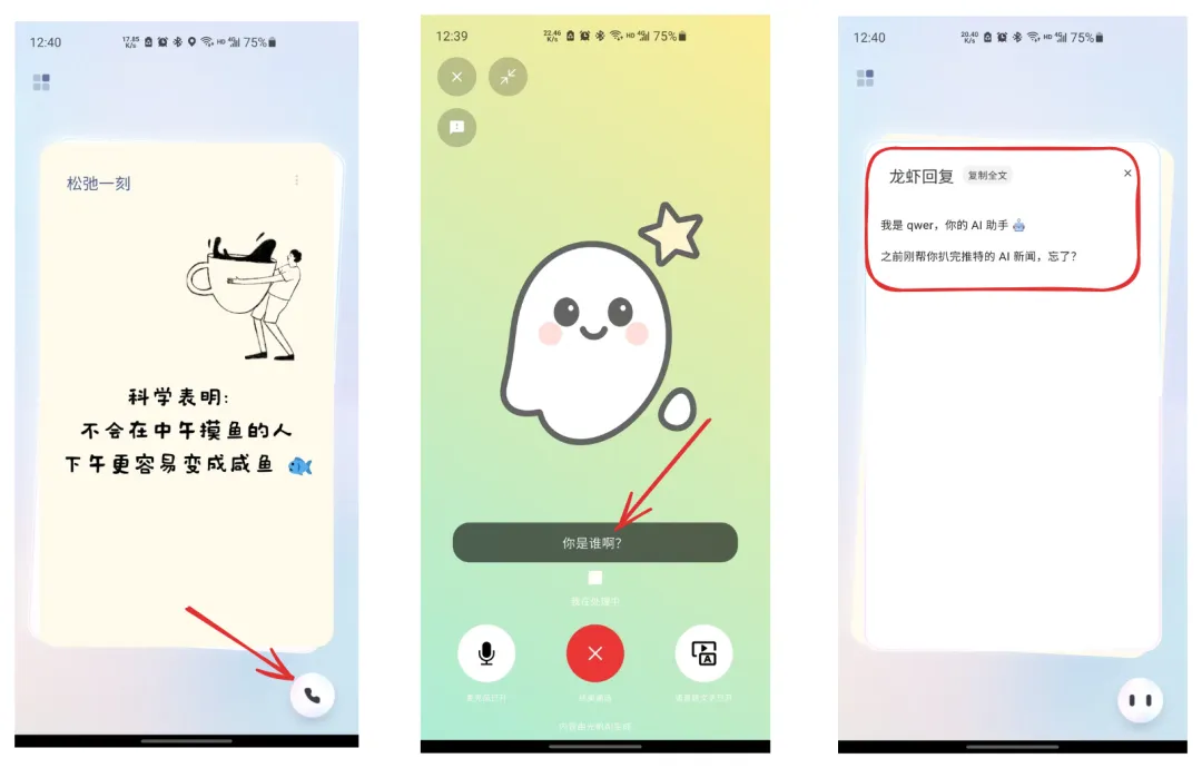 搞定之后,你就可以打开APP,点打电话,对着手机说一句话,家里的龙虾就开始干活了。