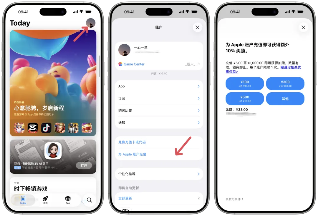 马上春节了,苹果还是惦记你的钱包,马上就来了App Store的充值加赠活动,最高返利10%,上限100元。