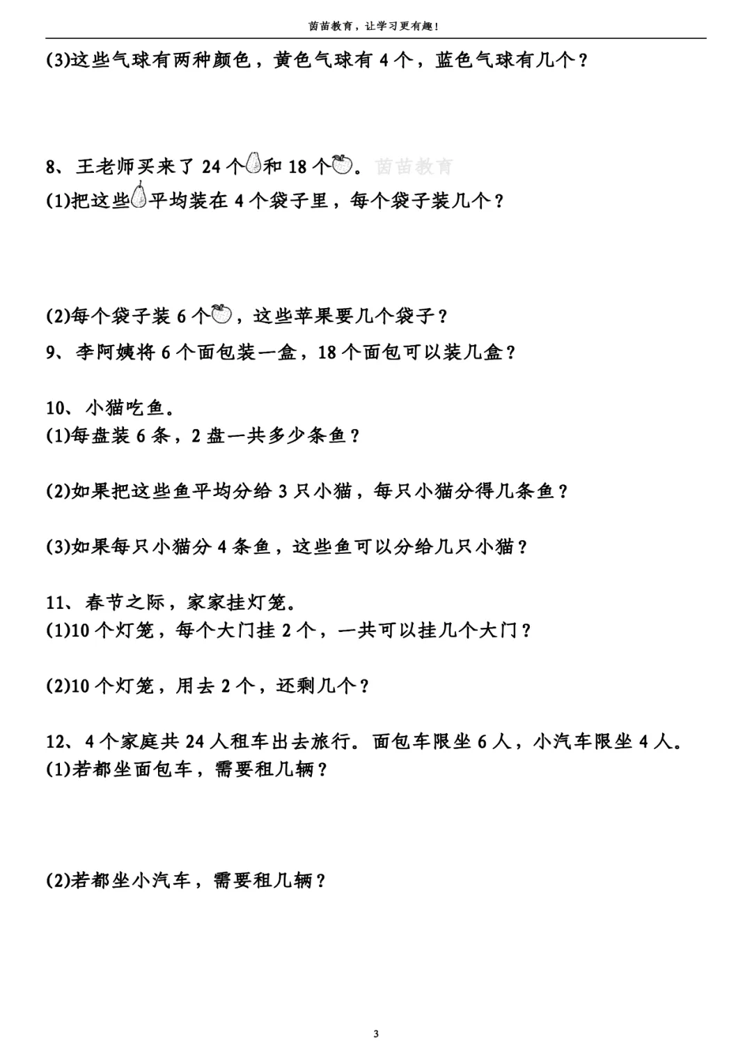 (2)18÷6=3(个) 答:这些苹果要3个袋子。
