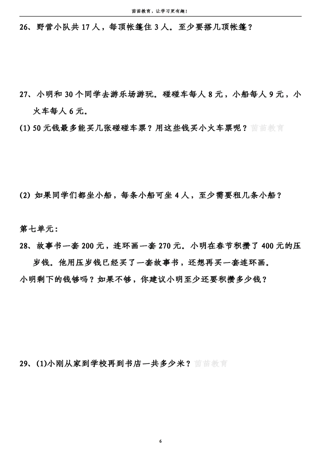 6、(1)15÷5=3(个) 答:需要3个筐。