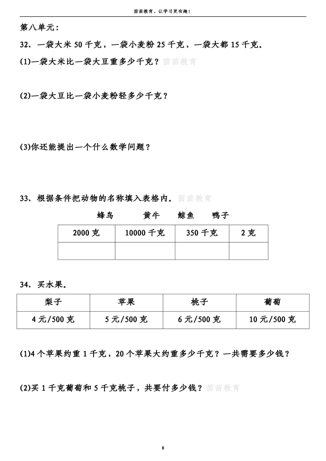 (3)一袋大米、一袋小麦粉和一袋大豆共重多少千克?