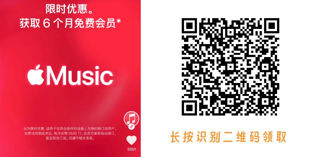 Apple Music 新用户福利,免费领 6 个月会员: