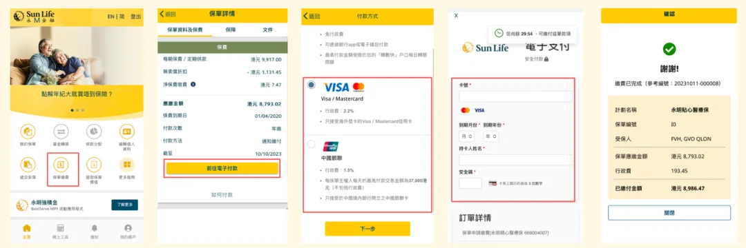 ⏩限制:中国银联通常只适用于医疗及意外保单,储蓄投资类保单可能不支持。如果你的保费金额较大,2.2%的费用也是一笔不小的开支,请务必在付款前看清弹出的「行政费提示」。