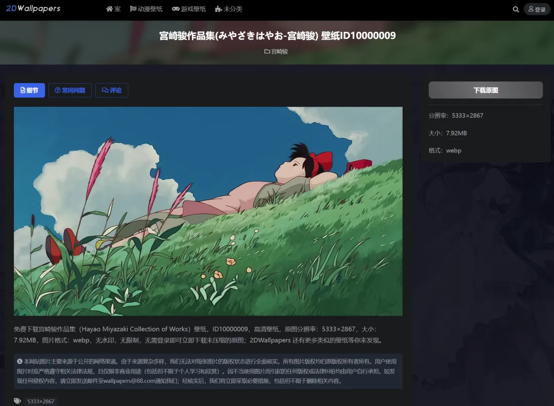 2D Wallpapers是一款提供高清 2D 动漫及游戏壁纸资源的网站,无需注册或登录即可直接下载、网站上的壁纸资源是免费下载的,且所有壁纸均不添加任何水印,保留原始画质