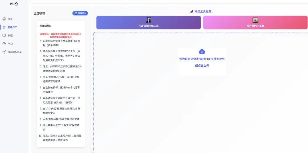 集成了OCR文字识别(可从图片或PDF中提取文字)、图片背景移除、水印添加、图片美化、格式转换等功能