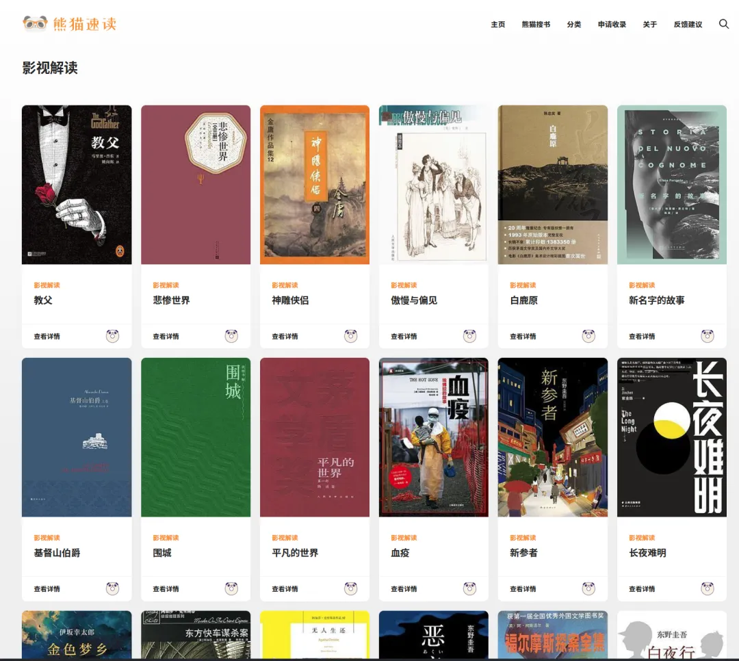 视频解读涵盖经典文学、科幻小说、推理悬疑、历史经典、政治经济等多种类