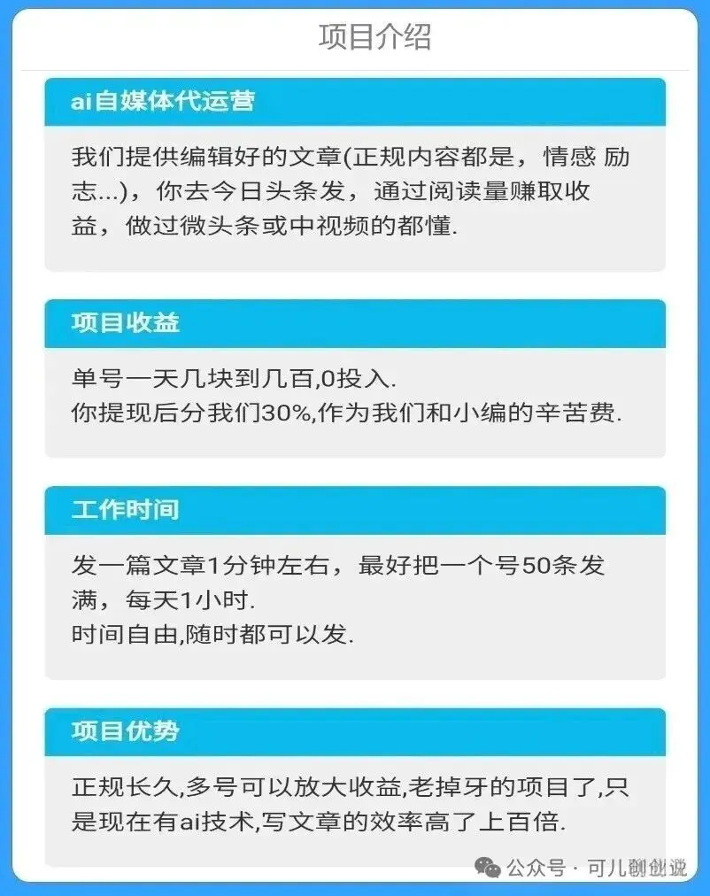 大家好,我是可儿。一个专注于分享自媒体副业兼职信息差项目的小博主,文章内容有用的话大家记得点个关注。