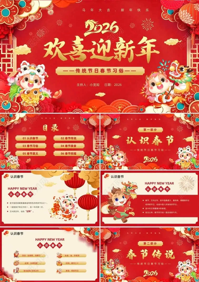◆本期分享:马年春节主题PPT模板(10套)