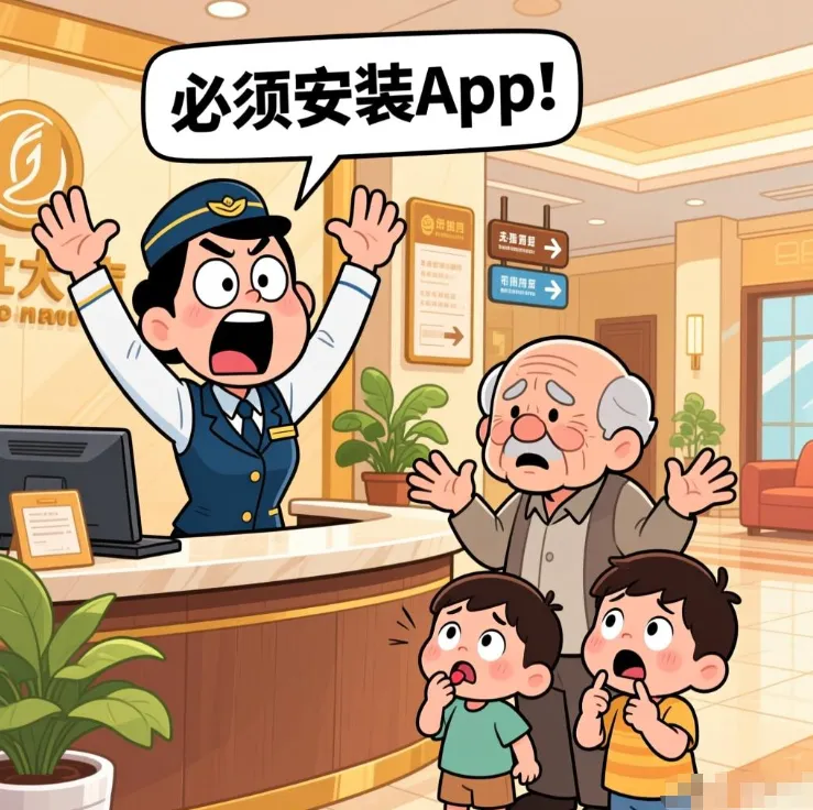带老人小孩住酒店遭拒:必须下APP!这是来搞笑的?