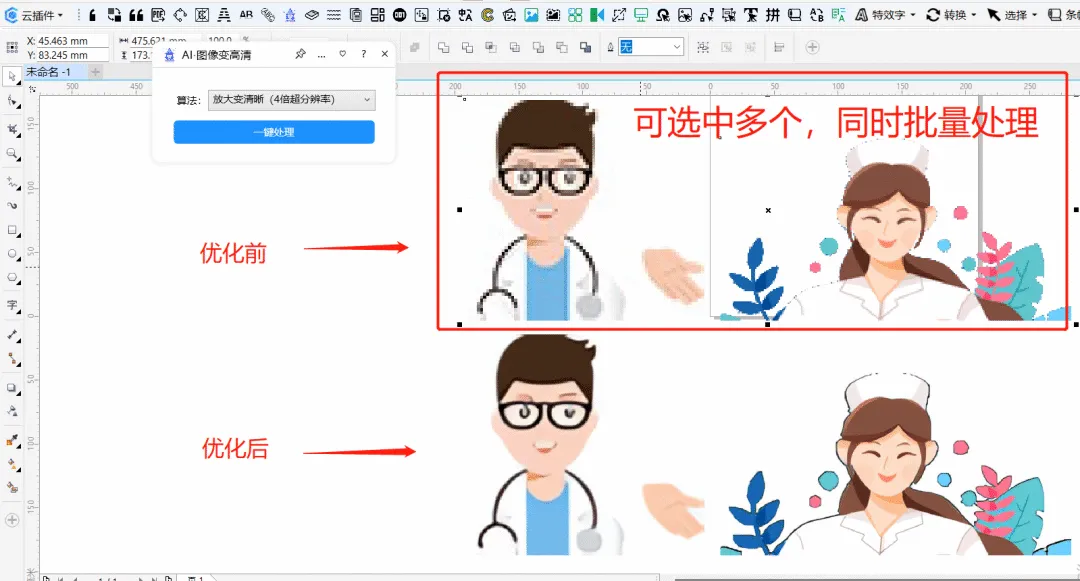 功能简介:基于人工智能算法,可将低像素的图像放大变清晰,转换为高清的图像,非常适用于小的卡通图片、卡通插图的放大,可以使印刷成品更加清晰美观。
