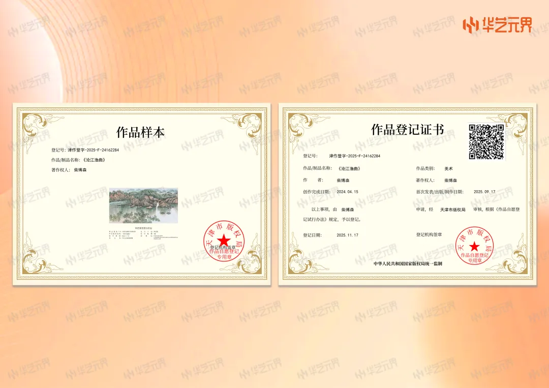 更值得关注的是,华艺元界将复杂的区块链技术转化为直观的可视化服务。用户可一键获取电子版权证书,证书内嵌区块链浏览器入口,支持随时查询作品从创作到流转的全生命周期记录。无论是权属变更、授权交易还是衍生开发,每一笔操作均被永久留存,形成可信赖的“数字履历”,彻底解决传统版权登记周期长、流程繁琐的痛点。