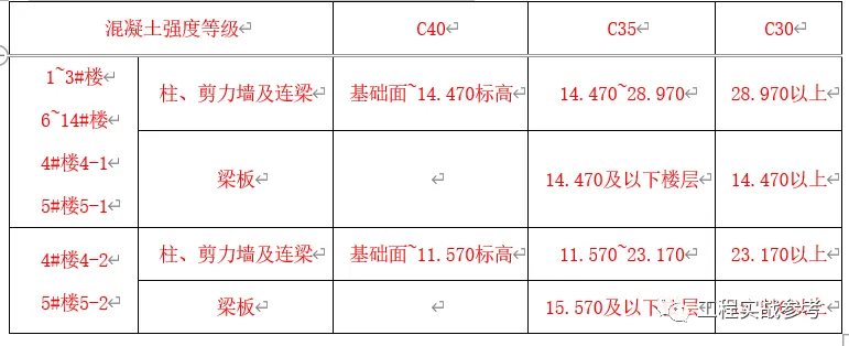 3)地下室1、2、3、4、5、7、8、10、12#楼有膨胀加强带,其混凝土配合比与其它位置不同;施工时其区域用彩条旗进行划分,防止混凝土误用。