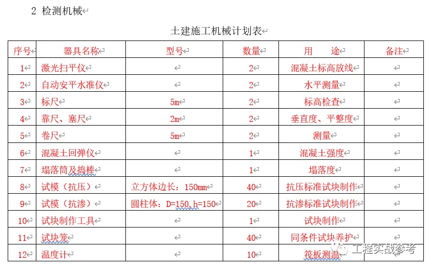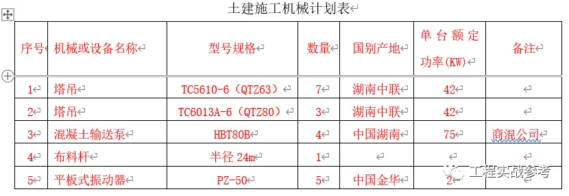 1)混凝土输送泵:为保证混凝土的施工质量和进度,本工程采用4台HBT80B型拖式混凝土输送泵和2台汽车泵(根据现场需要随时调入)。
