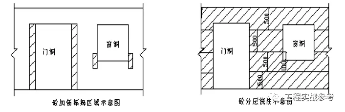 5) 墙上的施工缝应留置在门洞口过梁跨中1/3 范围内, 也可留在纵横墙的交接处。