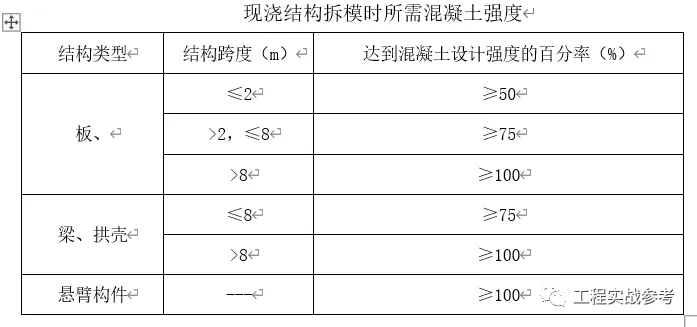 5 模板拆除的时间以混凝土同条件抗压试块的强度值结合现场实际情况作为依据,墙体常温达到1.2MPa方可拆模。