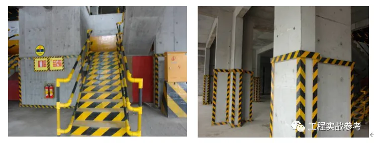 5 人员可以接触到的部位以及楼梯、预留洞口、柱、门边角,在拆除模后采用钉薄木条的方法进行保护,详见下图