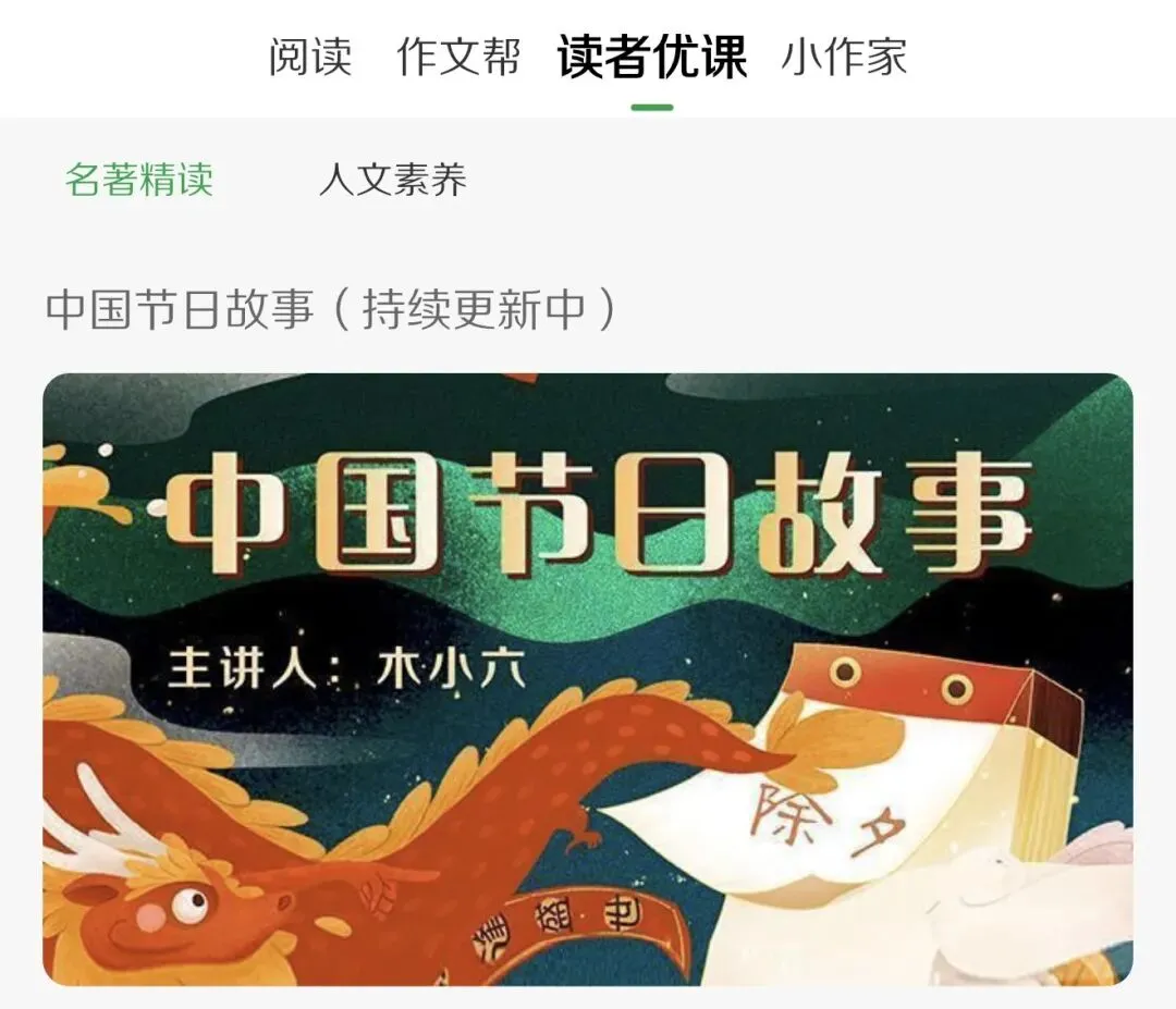 纸质书的文字是静态的传承,而数字化的课堂,能让节日文化真正“跃然眼前”。如果说《中国节日故事》是孩子的节日启蒙读本,那么读者App里的【学生帮】栏目,便是这份启蒙的最佳延伸,其中的【读者优课】专区,更是中小学生的经典解读神器。