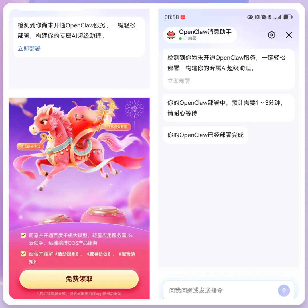 3 分钟建 OpenClaw ,百度APP把 AI 助理门槛降到了 0