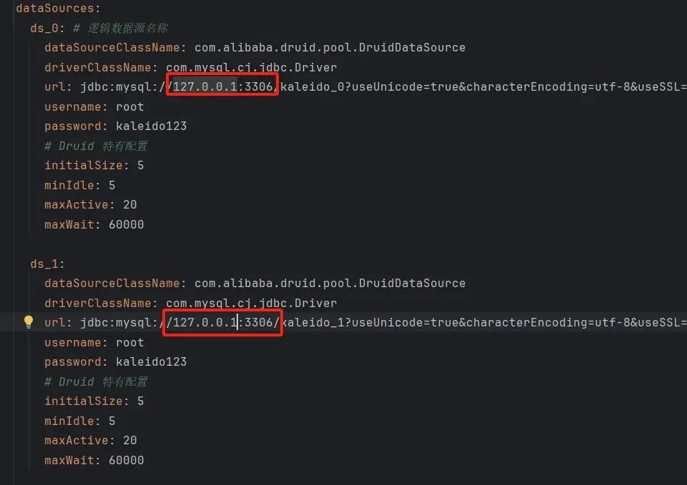 修改 kaleido-common/kaleido-ds/src/main/resources/sharding.yaml,将数据库地址改成自己的: