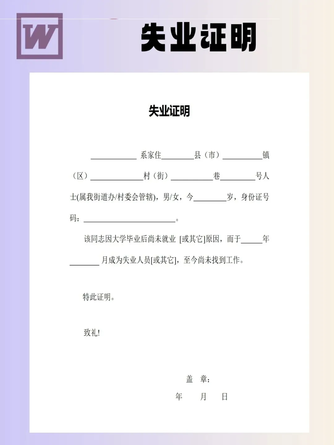失业证明模板