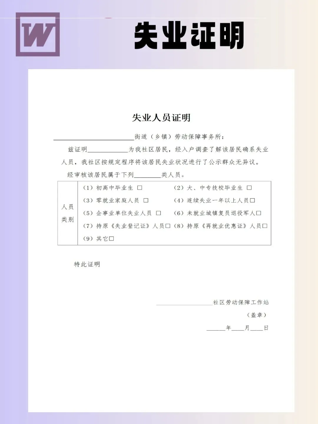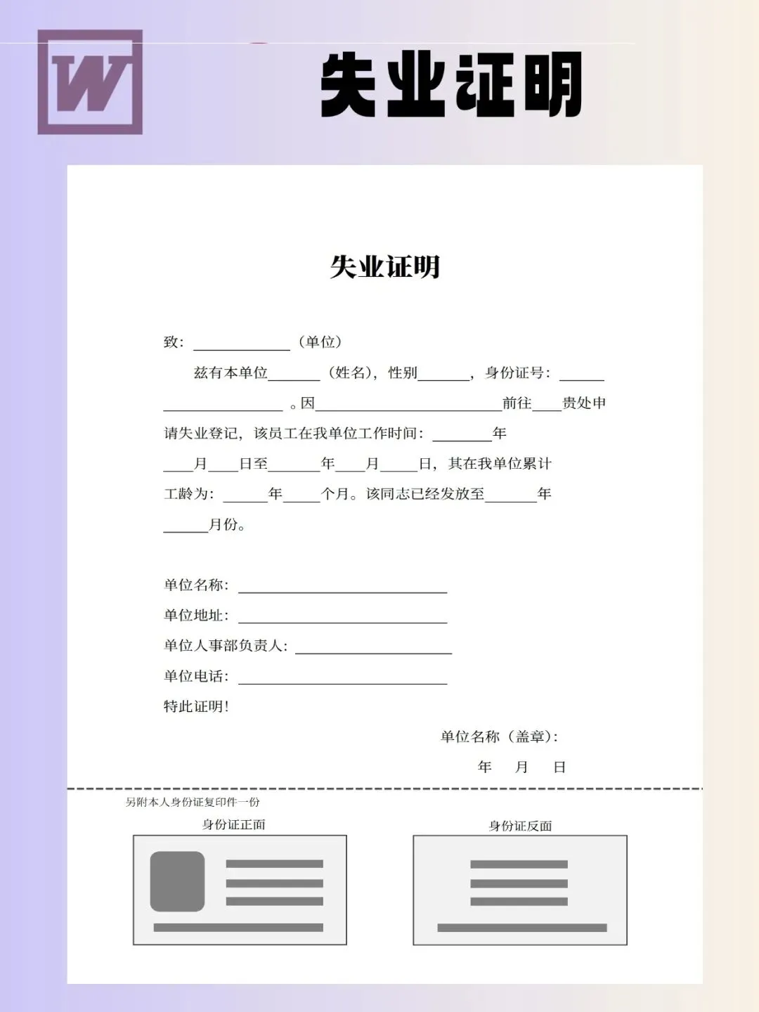 失业证明模板