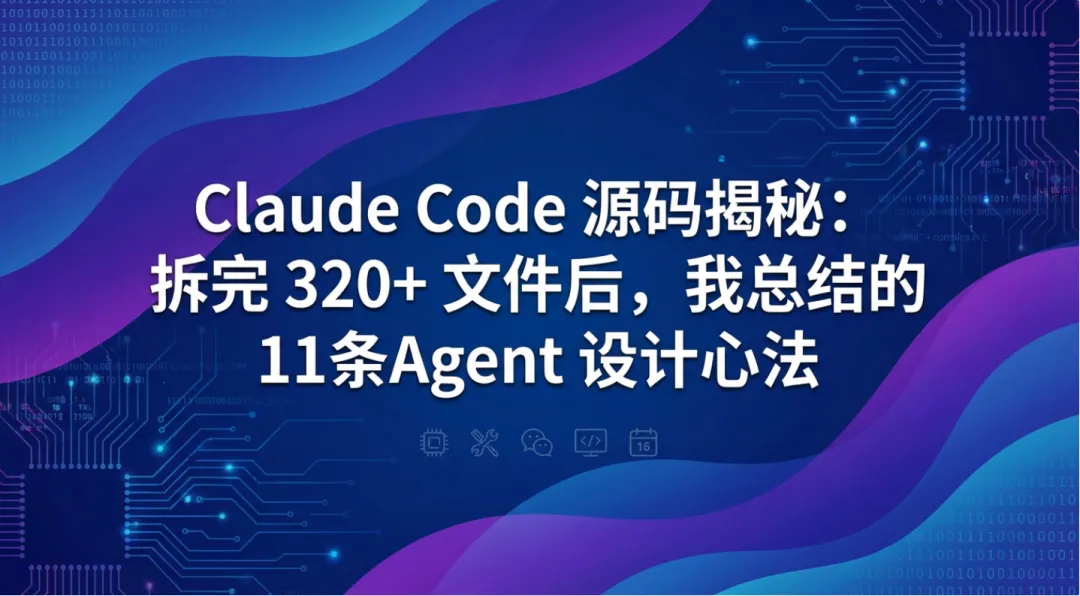 「Claude Code 源码揭秘」系列的最后一篇,上一篇《Claude Code 源码揭秘:用 React 写终端界面,Ink 框架到底有多香》。这 18 篇拆解,前面 17 篇是”术”,今天这篇收尾,聊聊”道”。从 48 个子目录、320 多个源文件里,我提炼出这些核心心法。不是什么理论框架,就是从源码里读出来的实战经验。