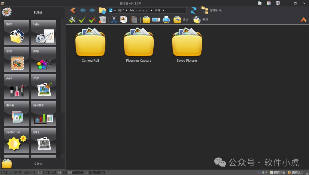 对于日常大量处理图片的需求,它还提供了批量处理功能,比如批量加水印、转换格式、美容处理、图片重命名等,效率大大提高,非常适合做批量操作。