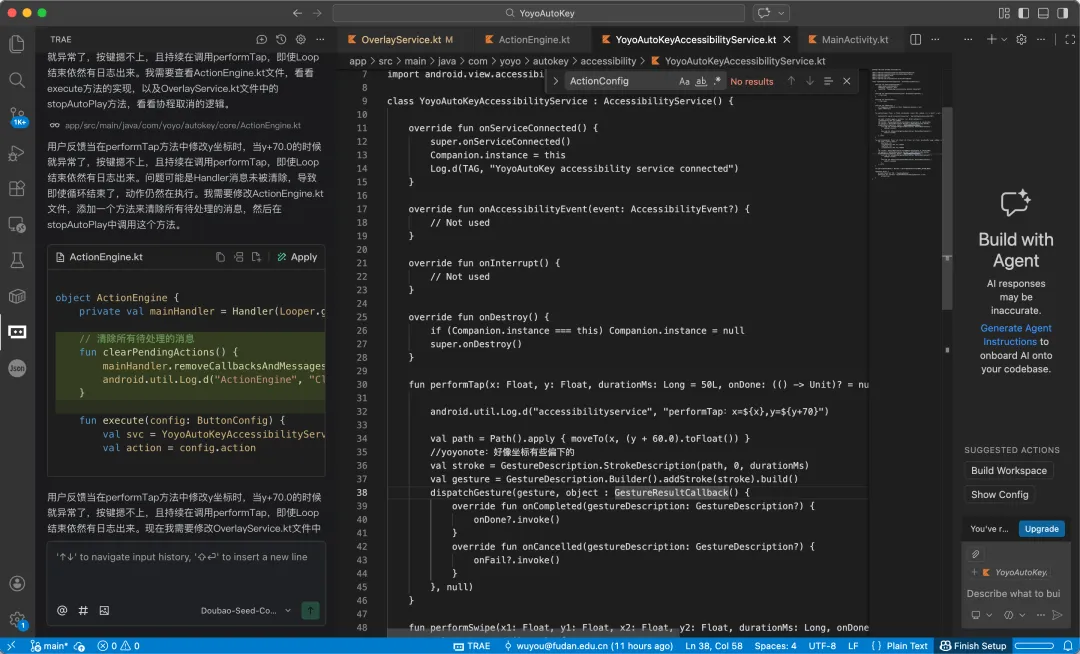 用IDE的修改后,会很喜欢IDE里面的AI,因为修改代码有大概的比对,虽然自己也是无脑接受,但是就是更顺畅一些。Android Studio自带的Cursor免费额度薅完后,我又去了VSCode薅TRAE,也就是我同时开着VSCode和Android Studio两款IDE一起看代码和改代码,顺畅的。