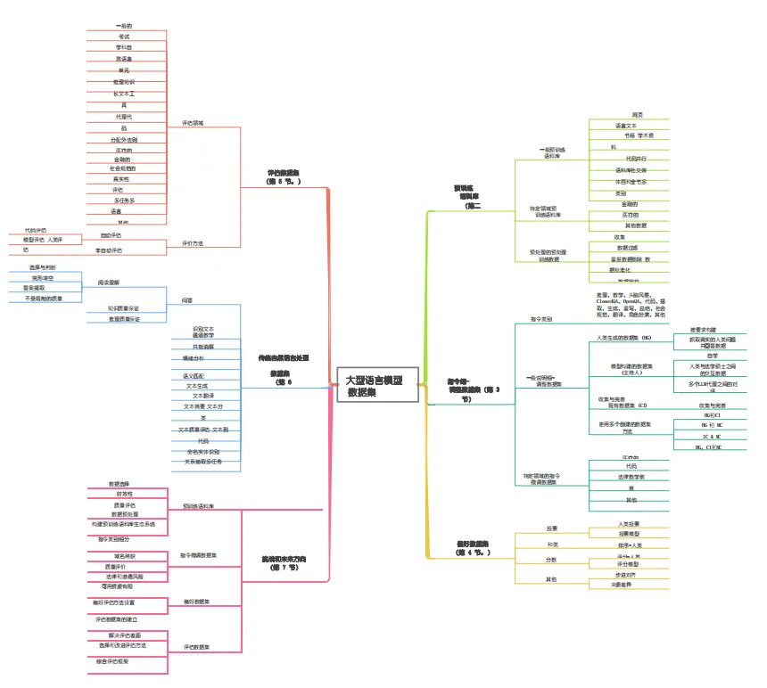 历史最全《大型语言模型数据集》全面综述pdf及444个数据集分享,涵盖预训练、指令微调、偏好、评估